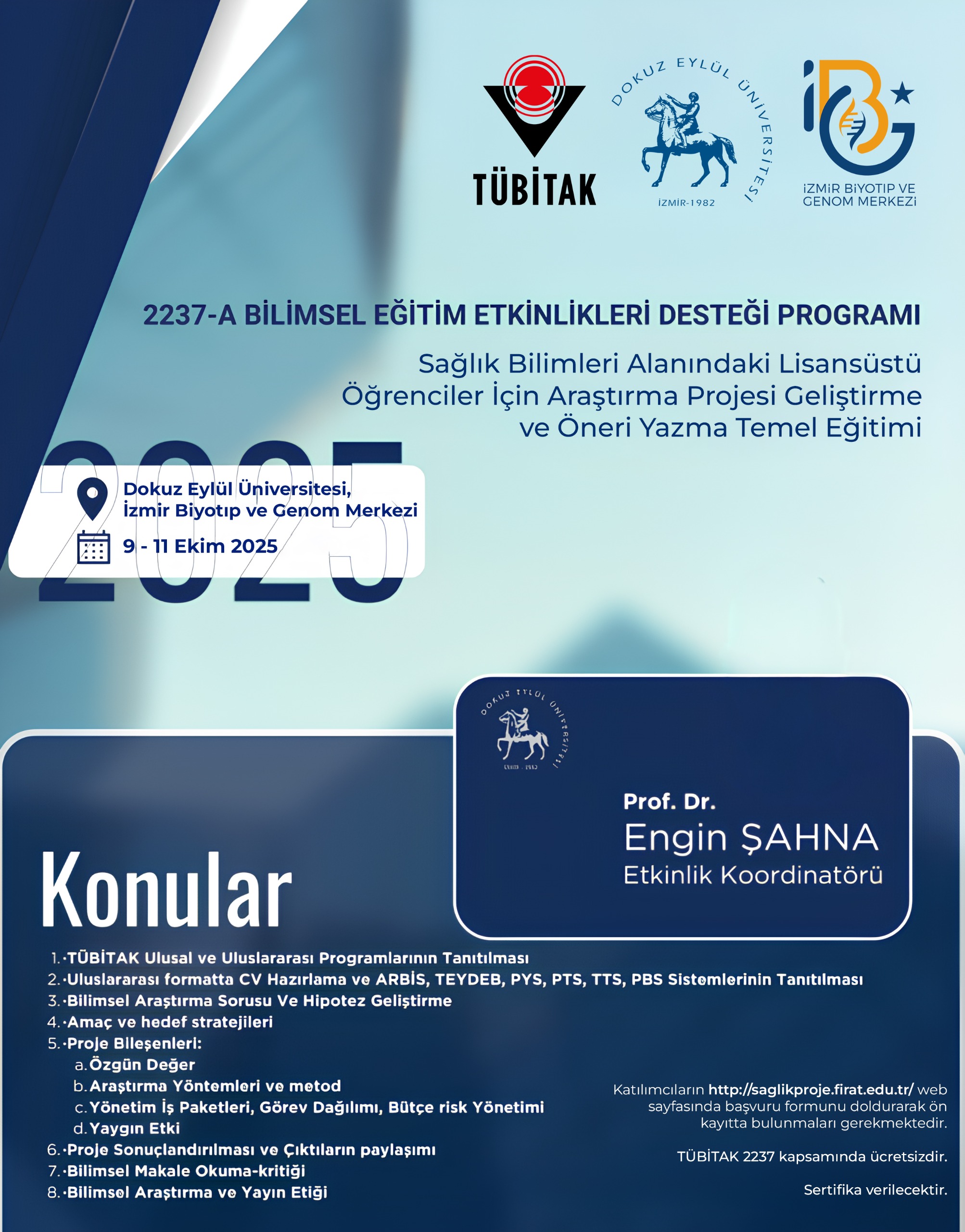 Eğitim TUBİTAK 2237-A kapsamında ücretsizdir.